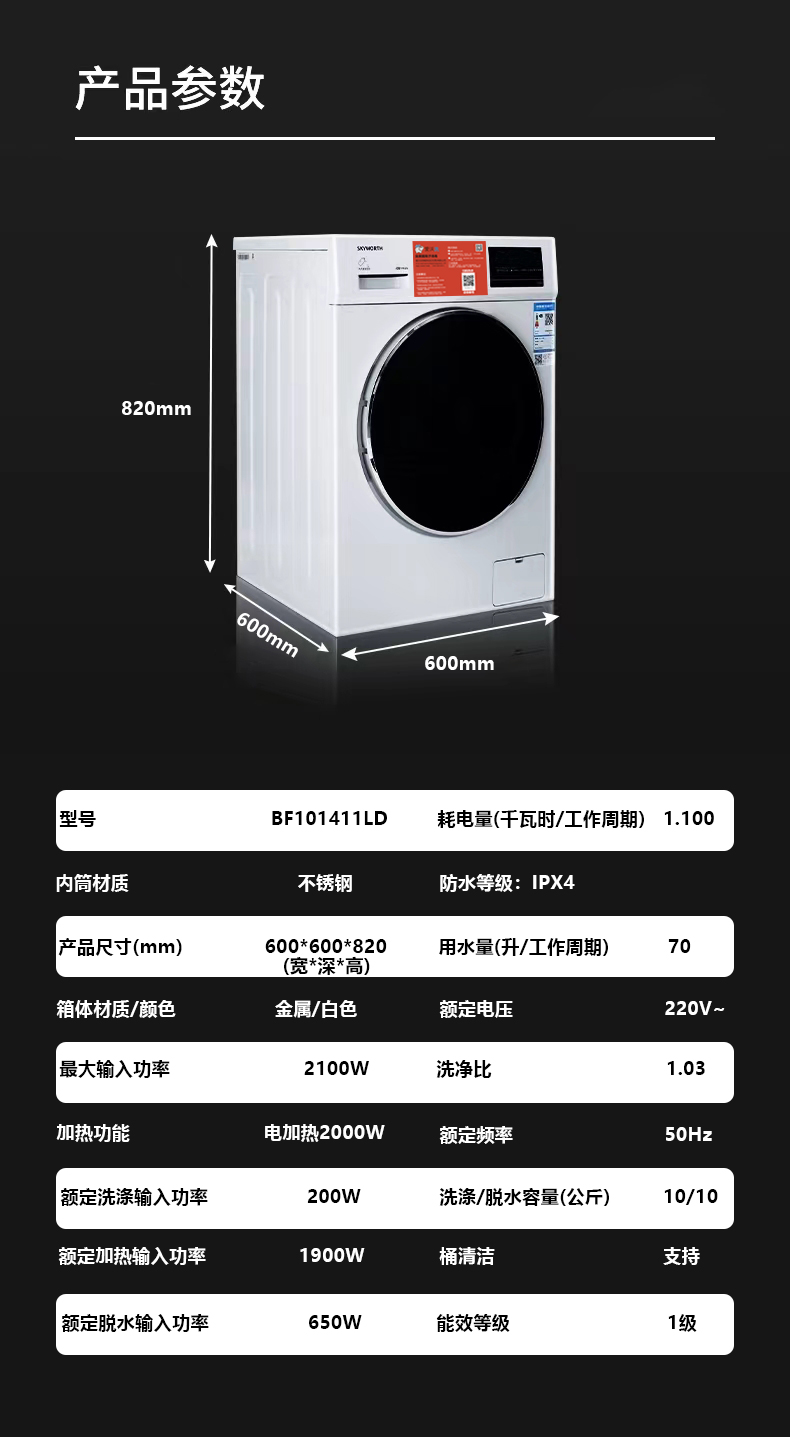 爱沃洗&创维物10公斤物联网滚筒洗衣机